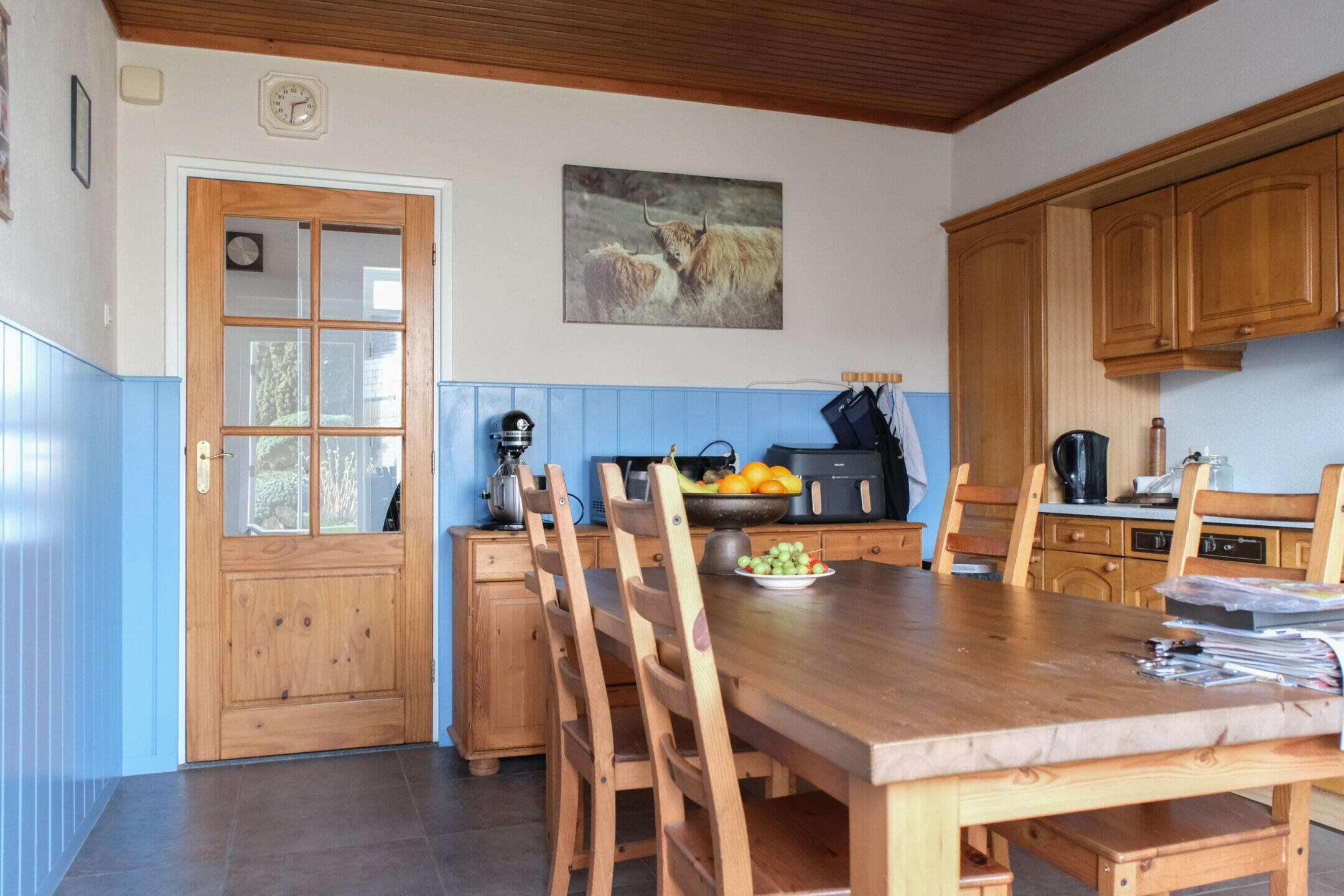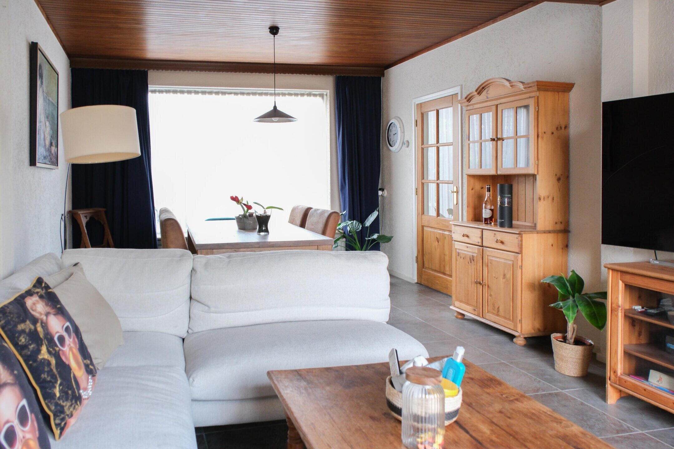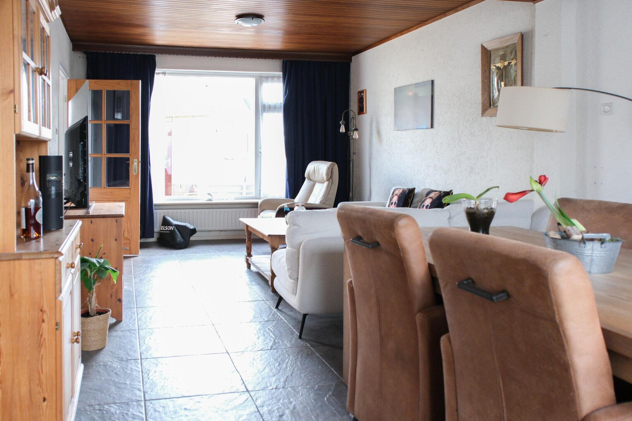 De woonkamer is een lichte ruimte dankzij de grote ramen aan de voor- en achterzijde. Hierdoor valt er veel daglicht binnen en ontstaat er een prettige leefruimte. De woonkamer is voorzien van een tegelvloer en een schroten plafond en staat in verbinding met de keuken.